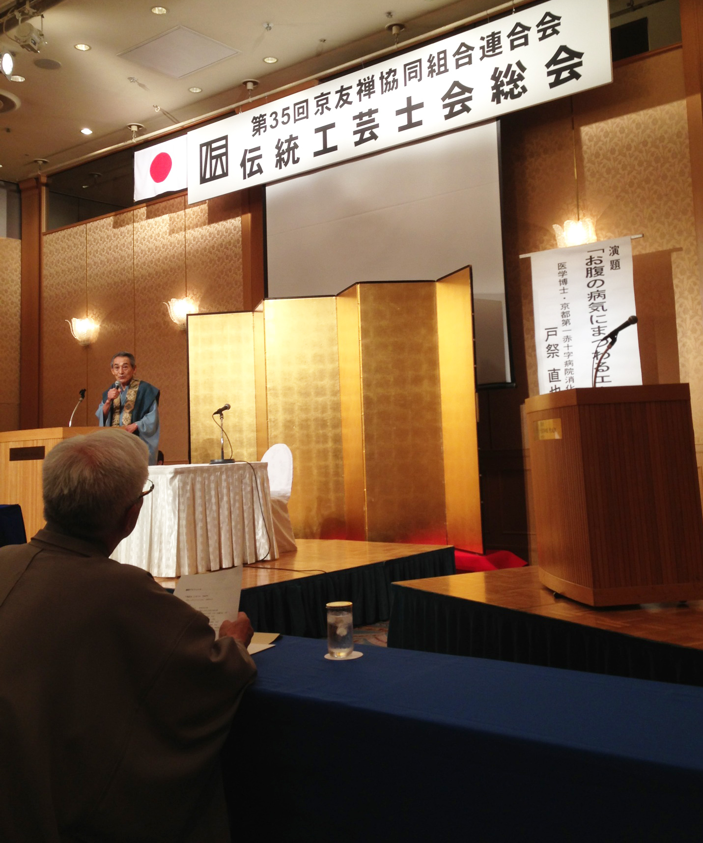 2016/07/06 19:52 京友禅伝統工芸士会 昨夜、京友禅伝統工芸士会総会がANAクラウンホテルで開催され 今回は引染組合の理事長としての来賓参加です。 真夏のような天候の中でしたが、着物で行ってまいりました。 田畑会長の熱のこもったご挨拶に 改めて、伝統工芸に携わっている者として身が引き締まる想いです。 未分類
