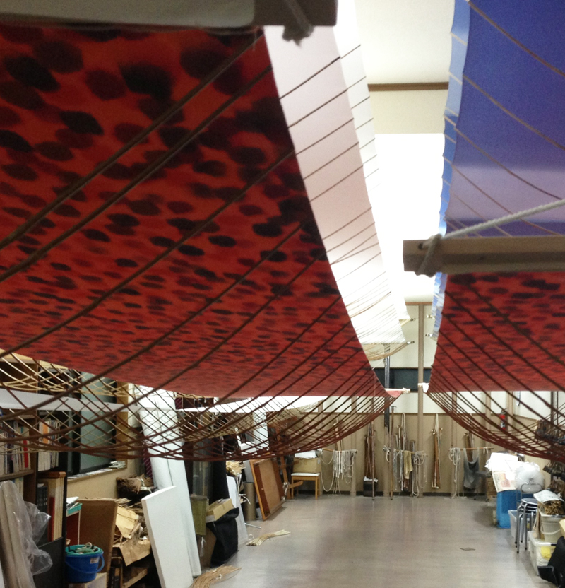 2016/07/29 22:43 帆布の引染ぼかし このところ、ご注文の帆布の引染ぼかしをただひたすら頑張っています 。 生地巾95cmに,均一に何mもぼかしていきます。絹物より生地巾が広いからぼかすのが大変ですが、そこは職人の腕のみせどころ。 一つとして同じぼかしにはなりませんが、手染めの味をだしながら同じピッチを繰り返します。 気の遠くなるような作業・・・というよりほんまに気が遠のきます(笑) 未分類