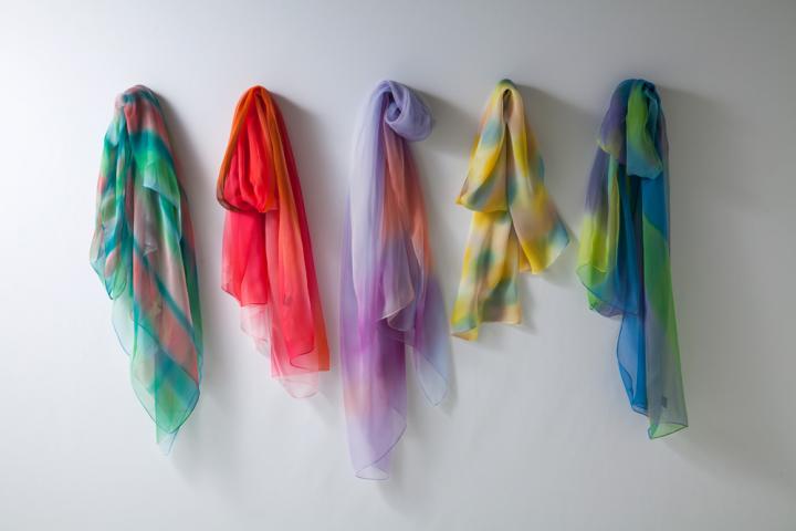 皆様、伝統工芸の京友禅引染のスカーフ・パラソル商品を