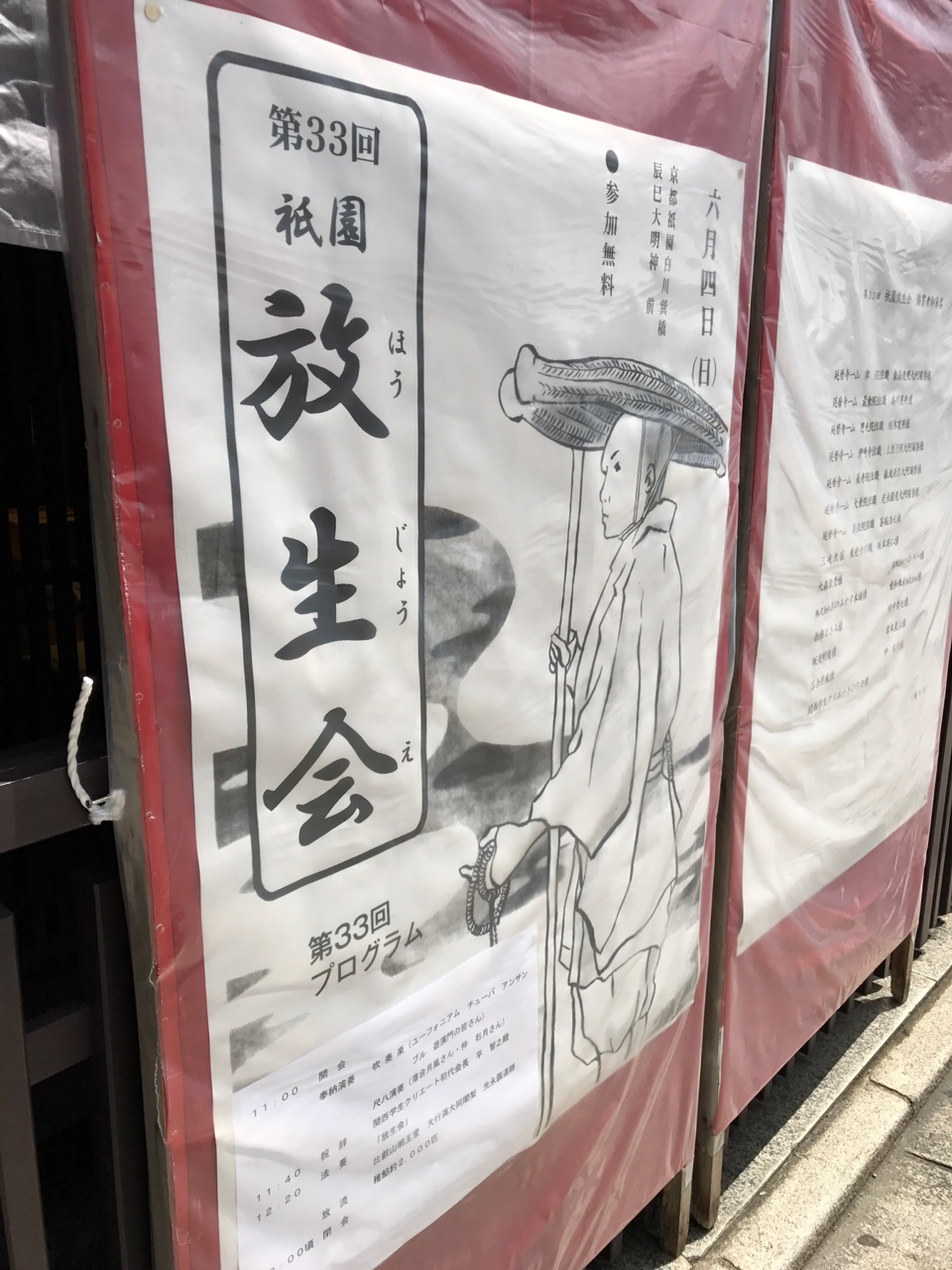昨日、恒例の祇園辰巳神社で行われる放生会に