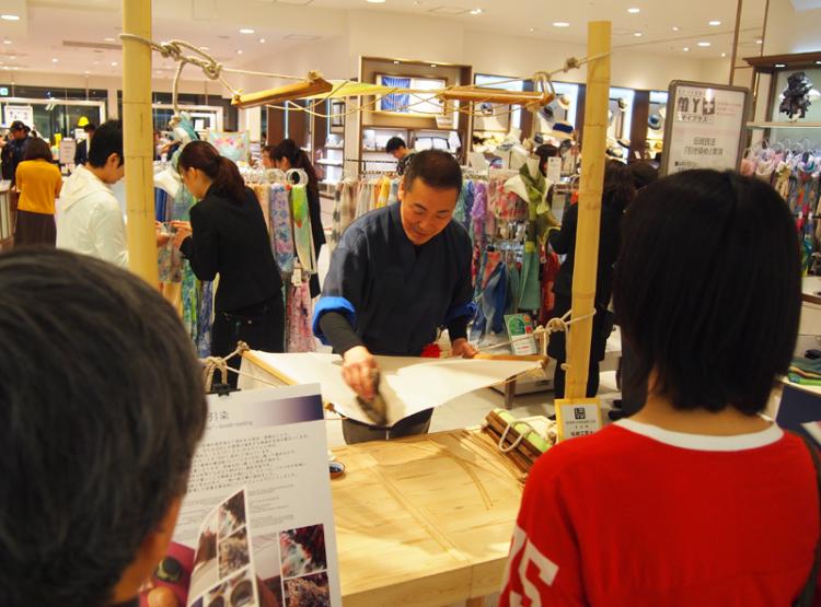 新宿伊勢丹、ムーンバット様の「月装(つきそう)」商品の売場にて引染実演