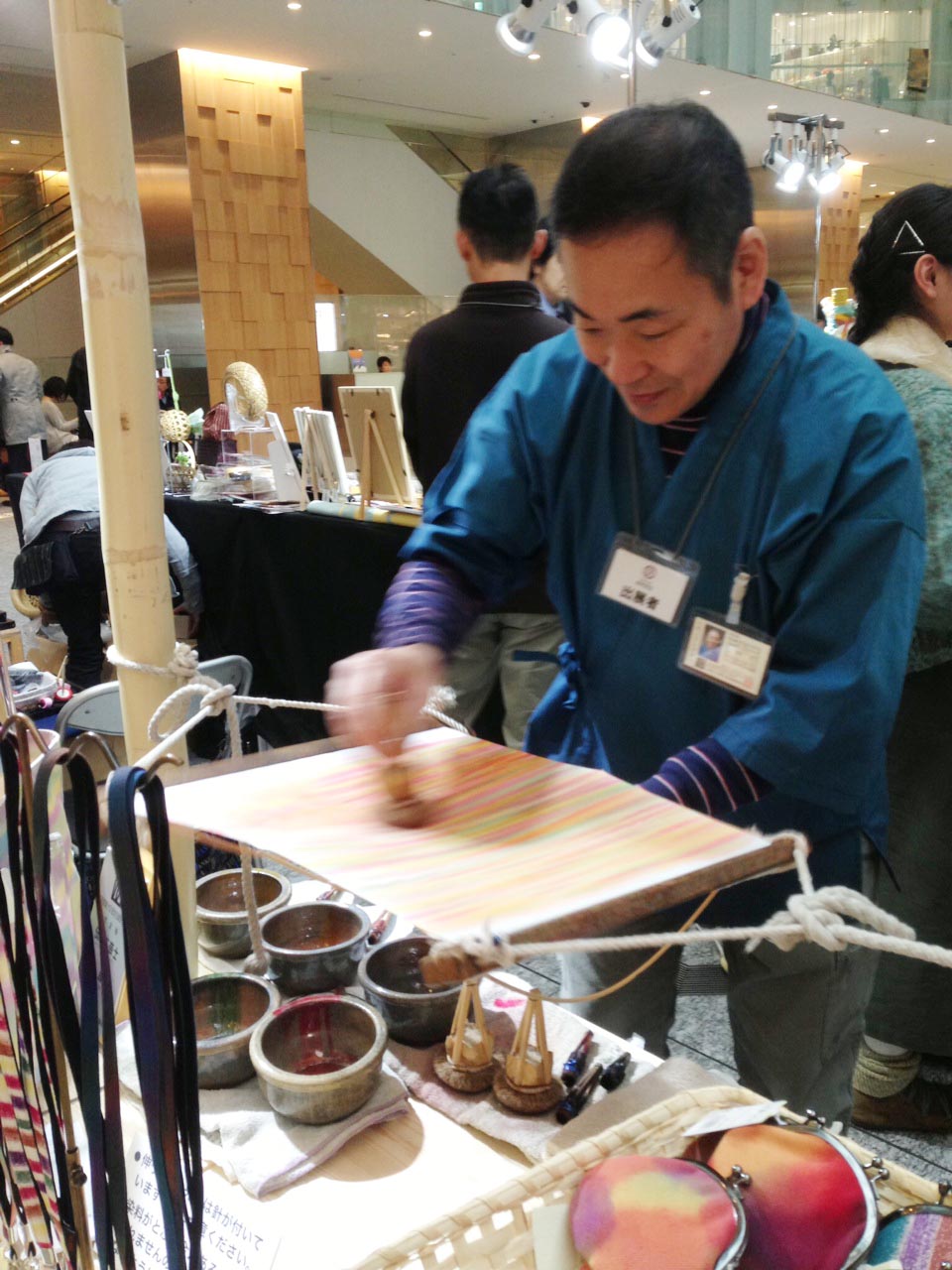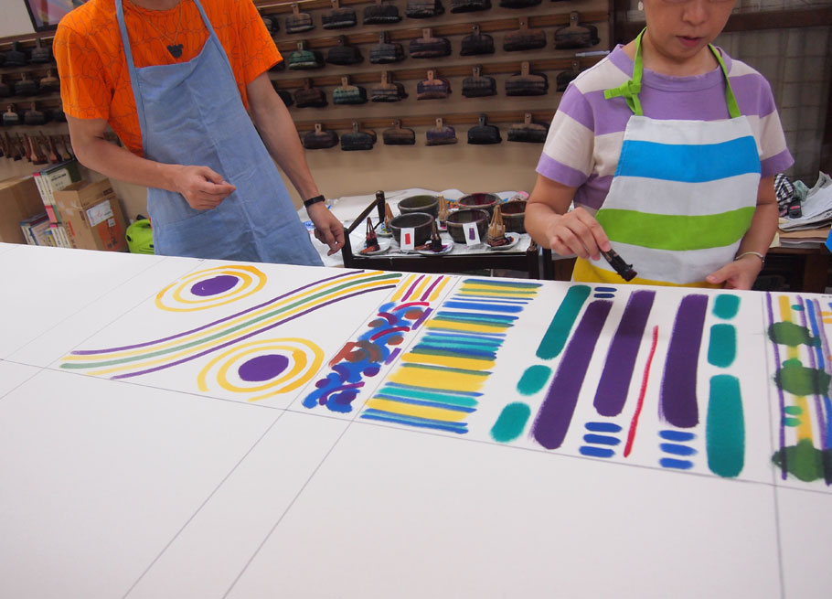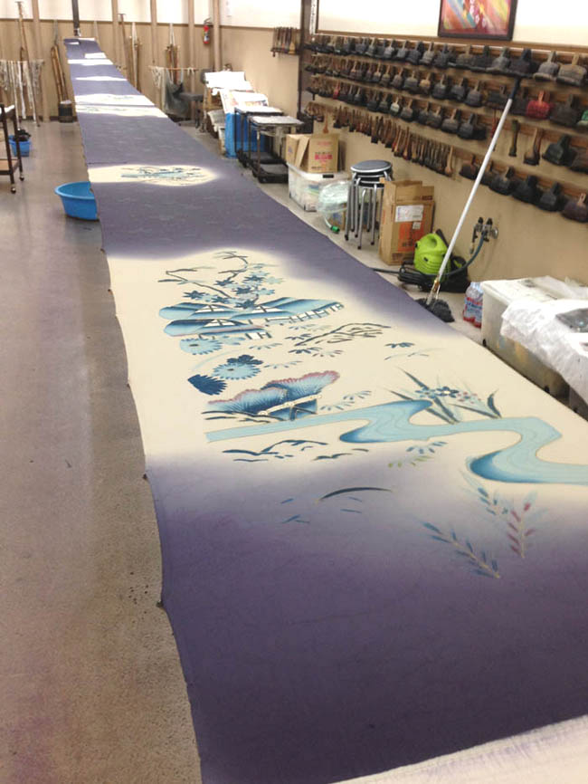 盛岡川徳、ムーンバット様の「月装(つきそう)」商品の売場にて引染実演