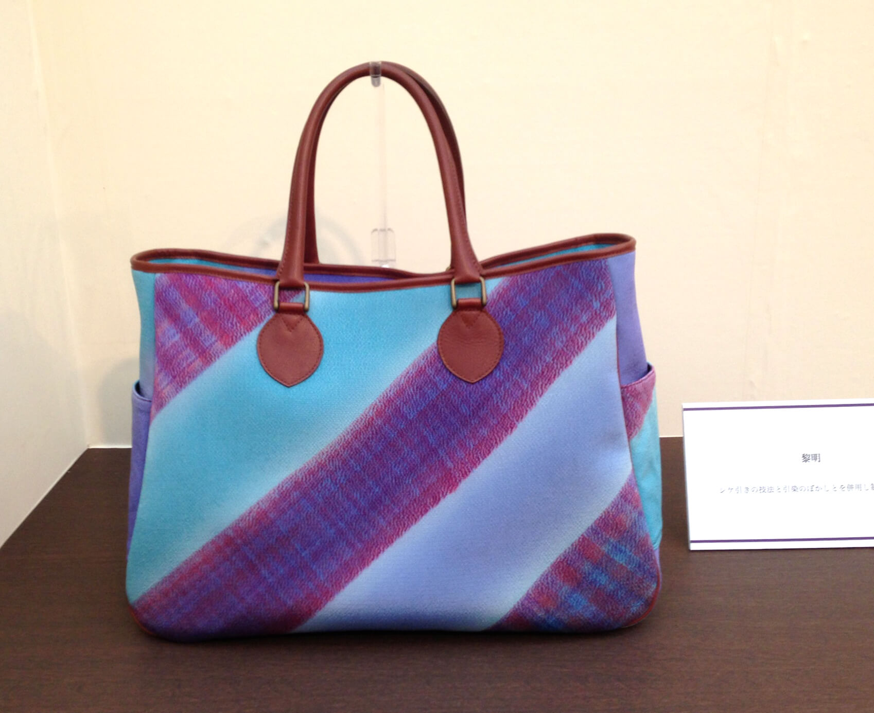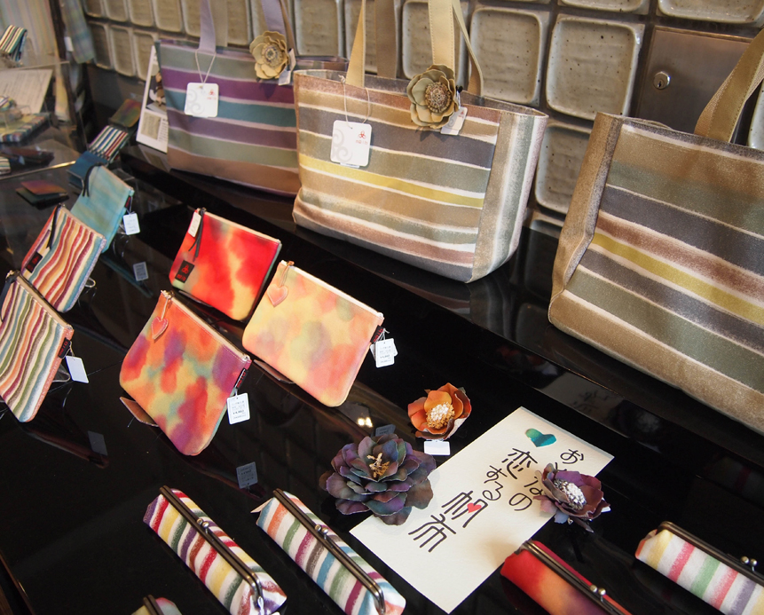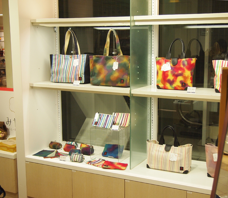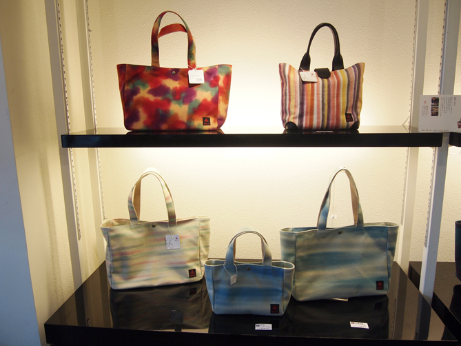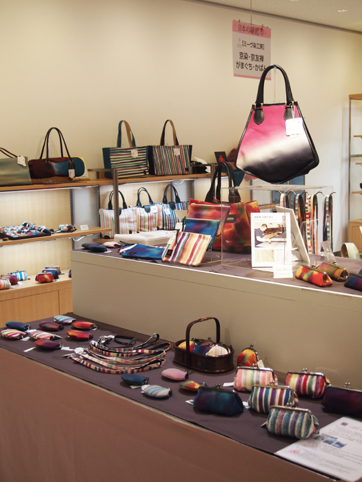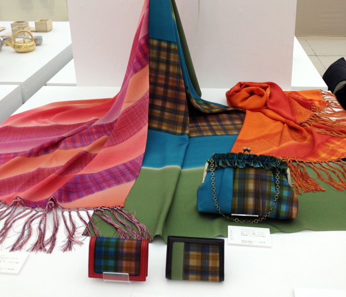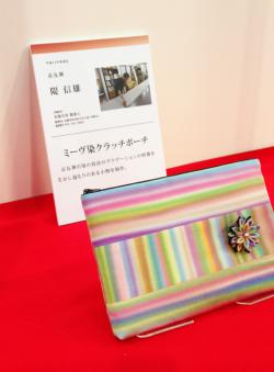 未来の名匠」技の披露展2014年3月21日(金)~23日(日) までみやこめっせ・日図デザイン博物館にてシケ引きという染め技のかばんを展示していただきました。