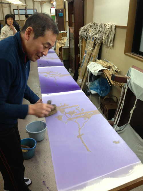 2013年11月12日 京都市友禅染め基礎コースの講師として弊社の染工房にて指導。