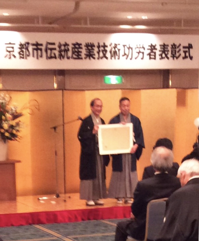 2016年12月13日、京都ホテルオークラ三階にて伝統技術功労者表彰式。賞をいただく。