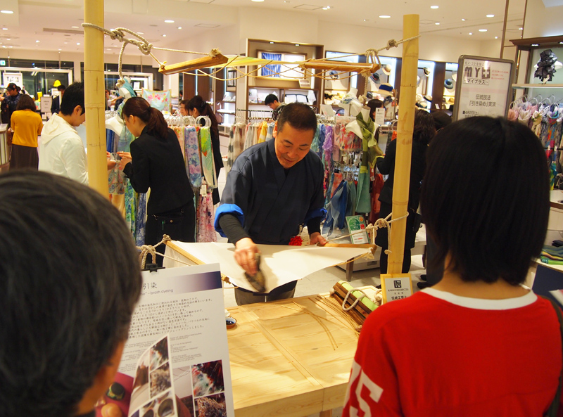 大阪のデパート、ムーンバット様の「月装(つきそう)」商品の売場にて引染実演
